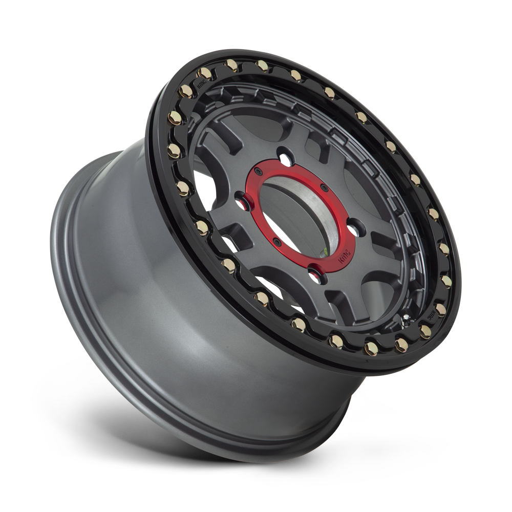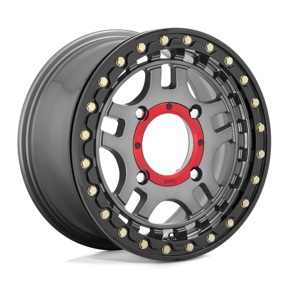 The KMC KS240 Recon Beadlock wheel blends a split five-spoke design with beadlock performance to create a dynamic look for any UTV or side-by-side. The KMC Recon Beadlock includes the KMC Pro cap, giving you the flexibility of switching between a red ring or black center cap accent. Zinc plated hardware and a forged Gloss Black Beadlock ring round out the aggressive style