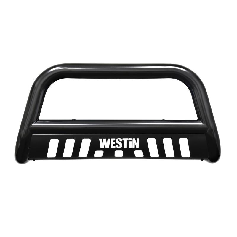 Westin(TM) E-Series Bull Bars are a front-end light bar designed for trucks and larger model SUVs. It is made of 3 diameter polished stainless steel tube. It mounts utilizing existing vehicle mounting points and installation does not require any drilling to the vehicle frame. Comes complete with mounting kit the Westin(TM) E-Series Bull Bar provides a mounting point for 2 auxiliary lights up to 6 in diameter. It features a die-cut Westin(TM) block logo design on the stainless steel skid plate unique to the Westin(TM) E-Series Bull Bar.
