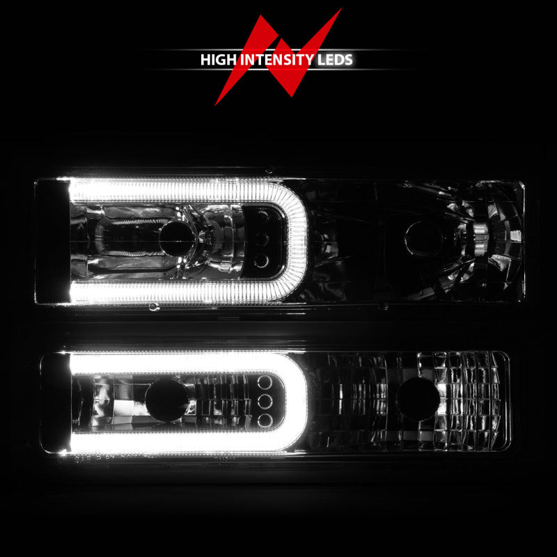ANZO 88-98 Chevrolet C1500 Crystal Headlights w/Light Bar Chrome Housing w/ Signal Side Markers 8Pcs