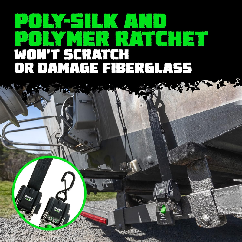 Rhino USA Retractable Transom Straps (2 Pack-Black)
