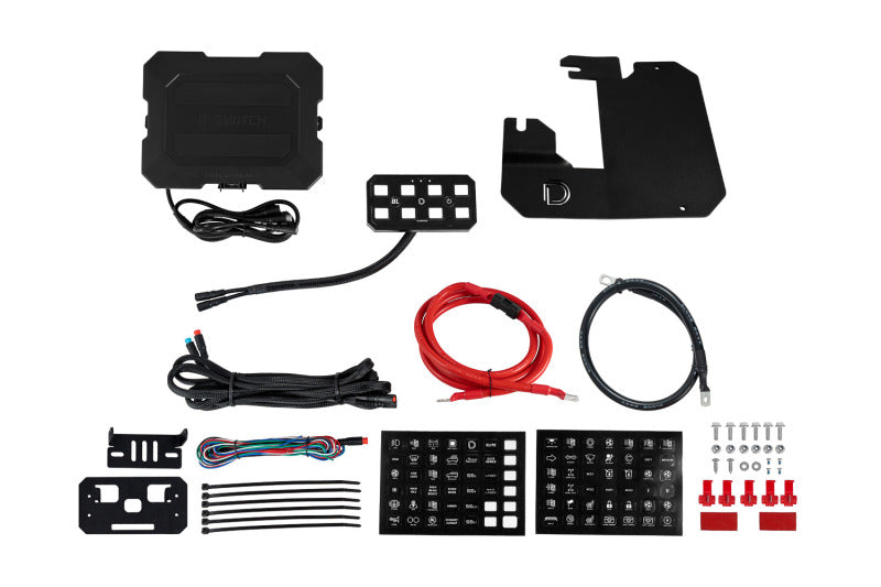 Overview Upgrade your vehicles setup with the Diode Dynamics D-Switch! This advanced 8-channel switch panel gives you full control over any 12V accessory with four 30A and four 15A outputs, delivering serious power with unrivaled customization. Dedicated Backlight Channel. Unlike other 8-button controllers, the D-Switch includes a 9th button for the dedicated backlight bus bar, providing eight extra outputs for accent lighting. Activate all backlit accessories with a single press, freeing up main outputs for other functions. Dynamic Channel Assignment. Unlike one-to-one switch panels, the D-Switch allows multiple output channels per button, giving you complete control over your setup. You can also assign multiple functions of an output to different buttons, such as configuring one button for flashing and another for full power of the same light. Fast, Responsive Bluetooth App. Control and configure settings using the Bluetooth app for iOS and Android, which delivers instant response, no lag, and seamless programming. OEM Signal Integration. Three trigger wires are included to automatically activate your outputs with vehicle signals such as high beams, fog lights, or reverse lights. The ignition wire powers the controller when the vehicle starts, shutting it down automatically when turned off. The Night Mode wire adjusts output settings and controller brightness for low-light conditions. Solid-State, Durable Design. The D-Switch is built to withstand the toughest conditions, with a solid-state design and an IP67-rated aluminum heatsink for superior heat dissipation. No mechanical relays to wear out or physical fuses to replace! Whether for off-road lighting or other 12V accessories, the D-Switch offers unmatched power, customization, and reliability.