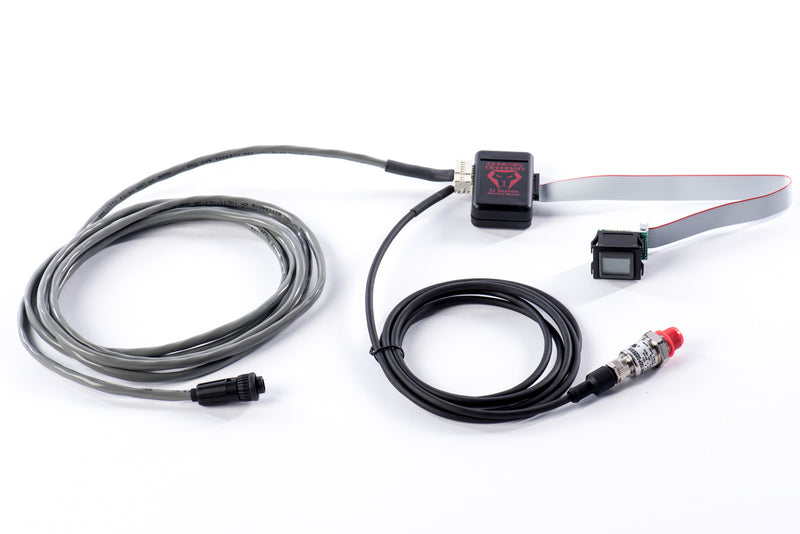 Simply screw the sensor into an available 1/4 inch NPT port (use adapters as required for your application) on your on-board air tank or manifold, attach the cable and plug it into the G Screen's interface module. The G Screen will automatically detect the sensor and will add a new PSI status screen the next time you cycle through the screens. If the sensor is removed, the PSI screen will automatically disappear.