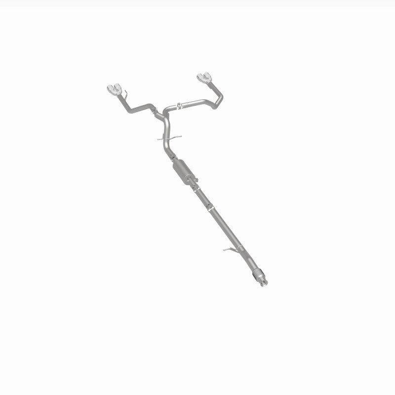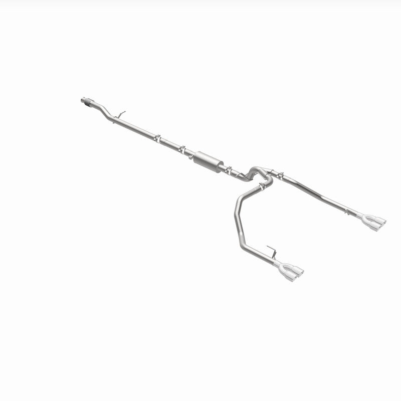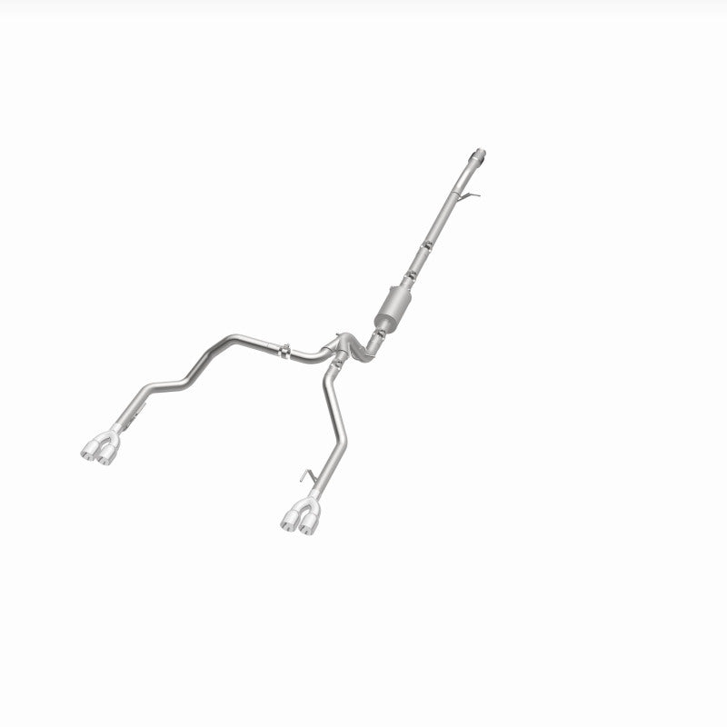 The MagnaFlow Street Series Cat-Back Performance Exhaust System 19477 brings out the personality of your Truck with our signature resonant, powerful engine tone and dyno-proven performance. Thanks to its fast-flowing, mandrel bent 3in. main piping and 1 Straight-Through mufflers ending in a Quad Split Rear exit with 3.5in. Polished Welded-On Double Wall Angle Cut Folded Edge tips, this Truck exhaust kit has the performance chops to match its sporty sound and appearance. Upgrade your ride to the next level with an exhaust that has the pipes to put other Truck's to shame. With this system your vehicle will be producing Aggressive exterior and Moderate interior sound levels while leaving other cars and trucks feeling envious at every stoplight. Exhaust kit 19477 features a cat-back layout that replaces your ride's stock exhaust components from near the catalytic converter on back. Extensive 3D scanning during development has resulted in a direct-fit design that you can easily install yourself. 19477 is produced using CNC precision robotic manufacturing techniques and is backed by MagnaFlow's 1-year limited finish warranty and limited lifetime construction warranty.
