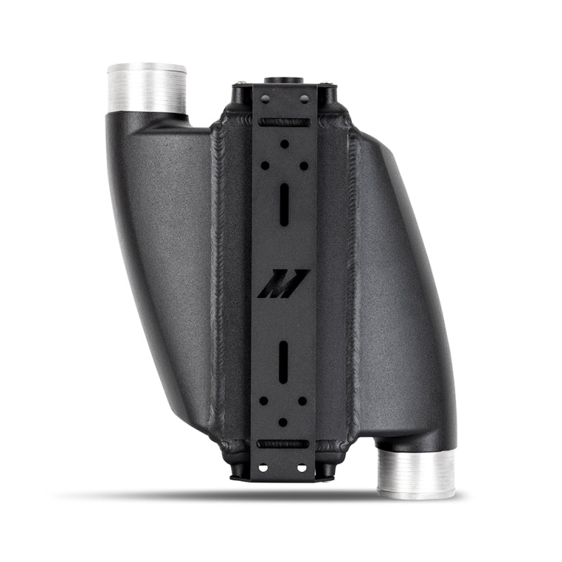 Keeping air intake temperatures low is the key to decreasing the impact of heat soak, reducing detonation, and producing consistent power output. As a result, Intercooler systems have evolved substantially over the last decade, bringing liquid-to-air intercoolers into popularity. To help bring the compact efficiency of air-to-water intercooling to your project, Mishimoto has developed a full lineup of high-performance air-to-water intercoolers. Our air-to-water intercoolers are available in single or dual-pass coolant flow configurations, each with multiple bar-and-plate core sizes and your choice of same-side or opposite-site outlets. These intercoolers support builds producing up to 1500 horsepower. When it comes to our intercoolers construction, robust is an understatement. Each intercooler features 5mm-thick cast-aluminum end tanks that are custom engineered for superb airflow, reducing overall pressure drop through the cooler. These tanks are professionally TIG-welded to our core, resulting in a pressure tolerance of up to 100 psi of boost. In addition, our intercooler design features unique CNC-machined ribbed inlet and outlet coupler connections, ensuring maximum grip between couplers and intercooler piping. Mounting and plumbing your air-to-water system can seem like a daunting task, but Mishimoto has made both tasks easy by incorporating -16ORB coolant ports into the core and providing a sturdy 1/8" thick steel universal mounting bracket. Adapting to your specific coolant line choice is easy with the Mishimoto -16ORB Aluminum Fitting selection . Mishimoto air-to-water intercoolers are finished with a sleek, durable, micro wrinkle black powder coat. As with all our products, these Mishimoto intercoolers include our signature Mishimoto Lifetime Warranty.