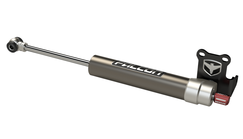 The Falcon Nexus EF 2.2 Fast Adjust Steering Stabilizer offers a wide range of adjustability with its 3-position Fast Adjust Knob. Settings include Soft, Medium, and Firm.