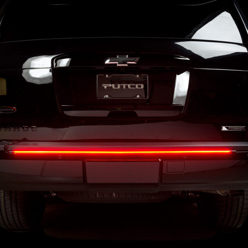 Give you and your fellow first responders extra safety and protection with the universal Putco E-Blade 48" Anti-Collision LED light bar. Reduce rear-end collisions by alerting incoming traffic that this emergency vehicle is braking or turning even when the emergency lights are activated. This light bar works as an extension of the factory rear tail lights with brake and turn signals. There are three color styles to choose from blue strobing, red strobing, and blue and red strobing.  All emergency lights will instantly turn off when you apply brakes or turn signals and once the signals are deactivated the emergency lights will start back up. This E-blade is designed to go under the tailgate with no-drill mounting clips. If you want to add this to a car or SUV you will need the Universal rear vehicle mount.Each E-blade kit comes with a 48" LED light bar that has more than 1,800 LEDs that push out a massive 1400 Lumens, an on/off switch, and no-drill clips. The live wire is used to choose one of two patterns and what speed you would like that pattern to go. Because of the performance, quality, and compact design... these are the perfect addition to your first responder PPV! Manufactured exclusively for Government, Police, Sheriff, & Public Safety Vehicles only! Putco will only ship to an official City, Municipality, County, State, or Federal Government Address. Call verification required for order processing. Thank you. After you place your order online, a member of our team may need to contact you to verify that this product will be used by an official government entity or public safety outfitter for its proper intended use, we reserve the right to cancel the order for this specific product at any time and you will be notified accordingly.