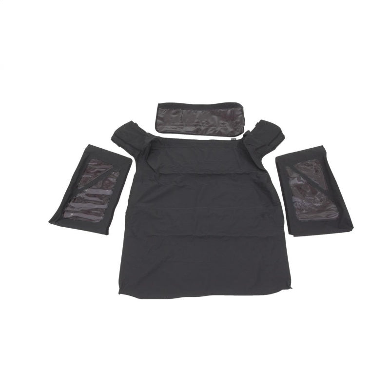 Replace your aging, worn out factory soft-top and gain some additional storage space inside the driving compartment. All the features of the original factory top with exclusive Rampage additions which includes two zippered storage pockets. Produced in original factory specifications and colors. The Rampage replacement top easily installs over factory framework, attaches to factory mounting points and Original Equipment belt rail attachment System. Fits all factory applications. For half door applications only.